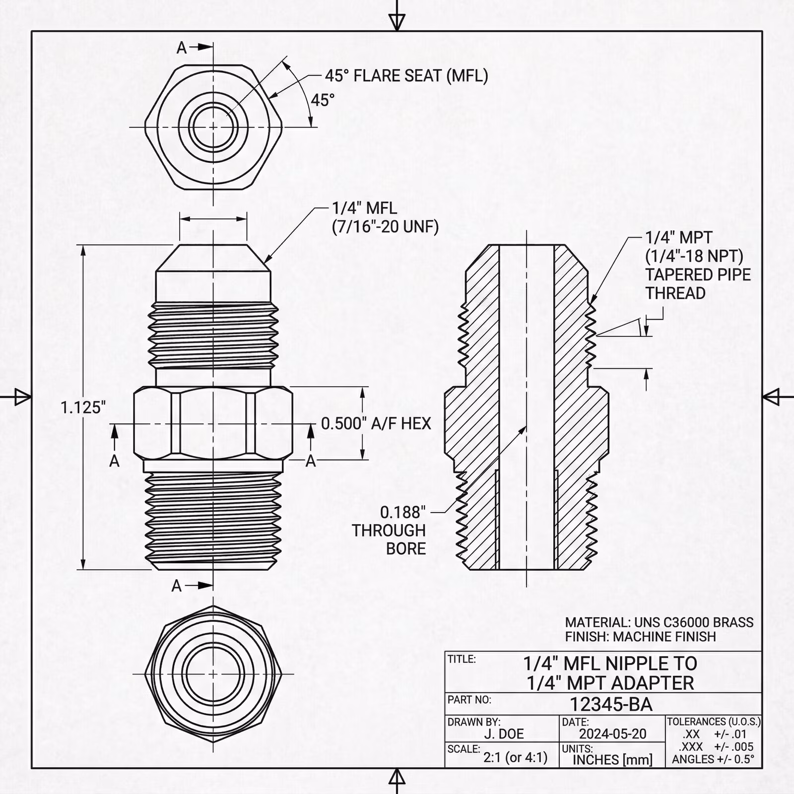 1/4 Inch MFL Nipple to 1/4 Inch MPT Adapter