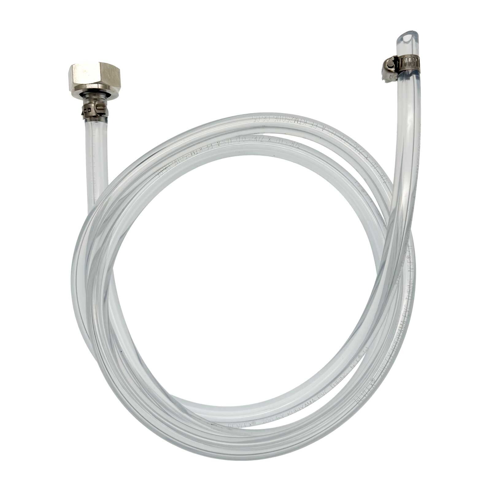 Use this liquid line assembly for connecting a commercial beer coupler to a commercial refrigerator shank. The opposite side is open with a worm clamp to attach to a barb fitting of your choice.